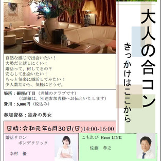 気軽に参加できる大人向けの、合コンみたいな婚活パーティ―です